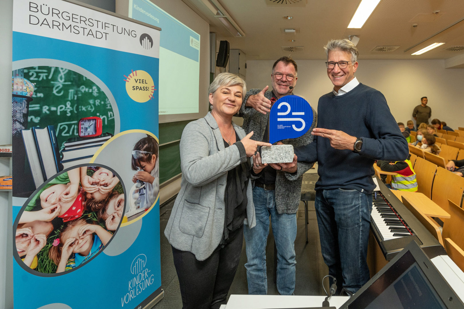 Die Bürgerstiftung Darmstadt bekommt für ihre Kindervorlesungen zum Jubiläumsjahr „25 Jahre Wissenschaftsstadt Darmstadt“ den Wissenspunkt von der Stadt verliehen.